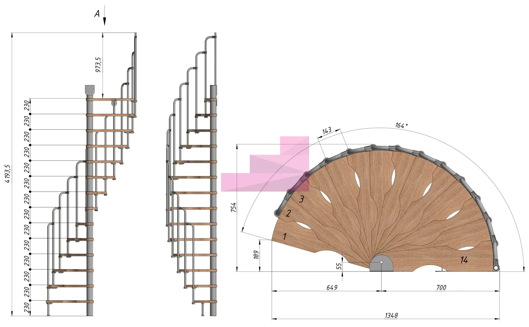 Высота лестницы 3220 - 3450 (14 ступеней) мм