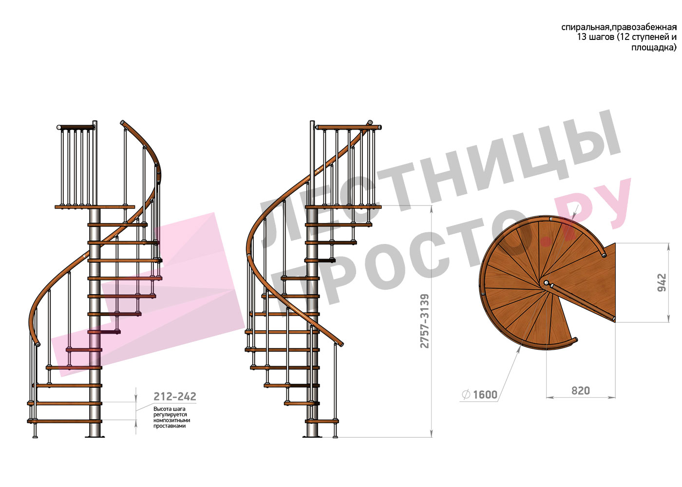 | Винтовая лестница Prosto Spiral Black D160см, h275.7-313.9 см |