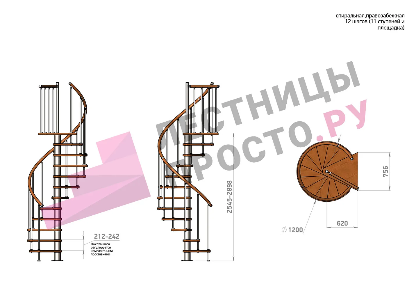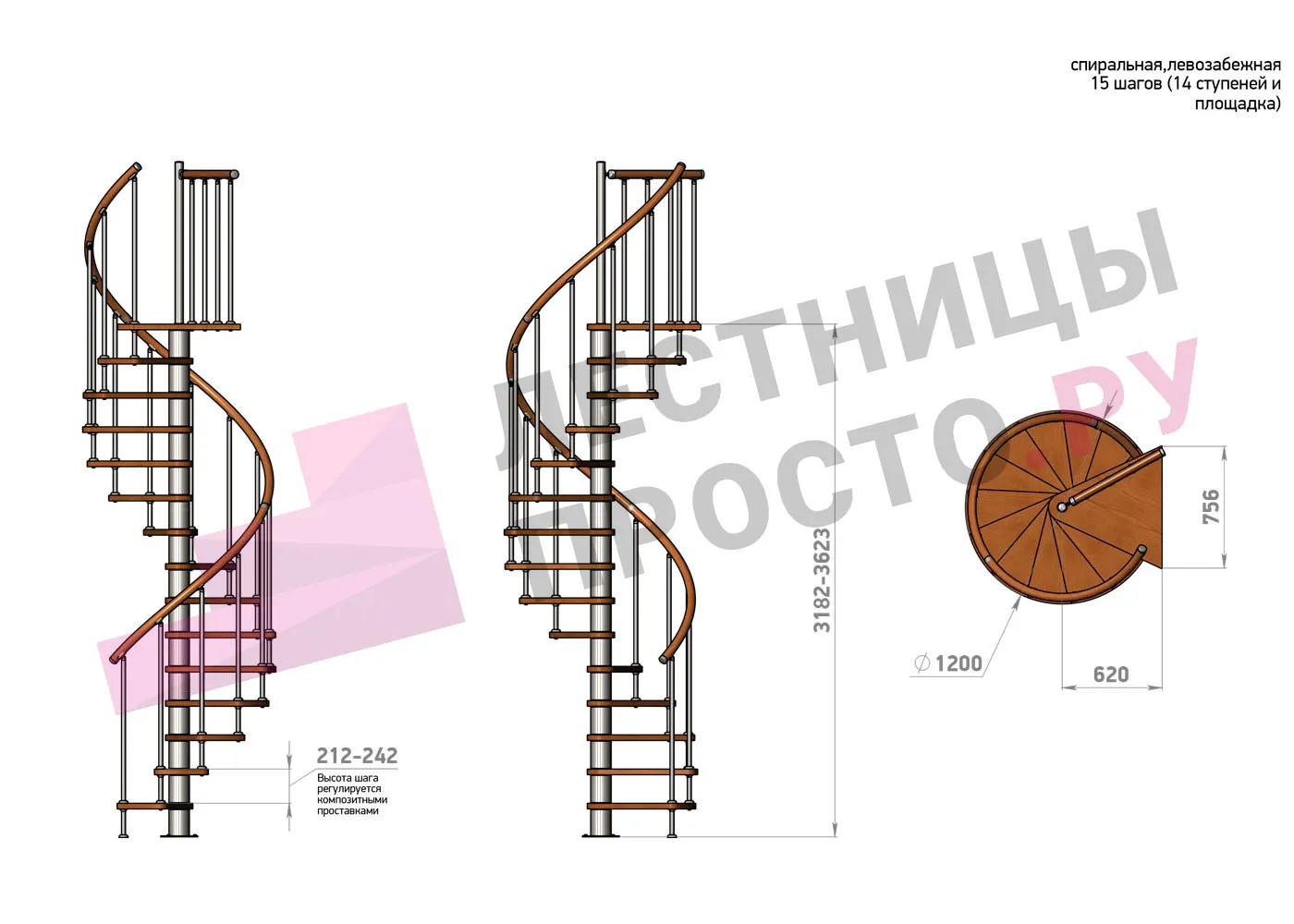 | Винтовая лестница Prosto Spiral Black D120см, h318.2-362.3 см |