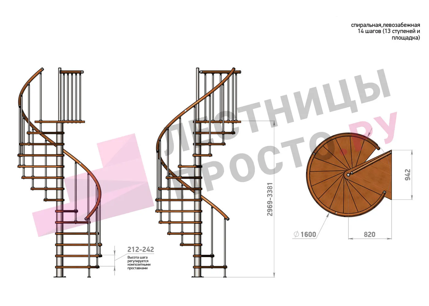 | Винтовая лестница Prosto Spiral Black D160см, h296.9-338.1 см |