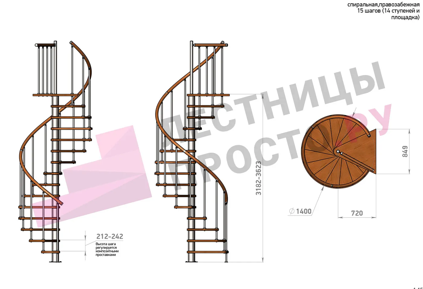 | Винтовая лестница Prosto Spiral Black D140см, h318.2-362.3 см |