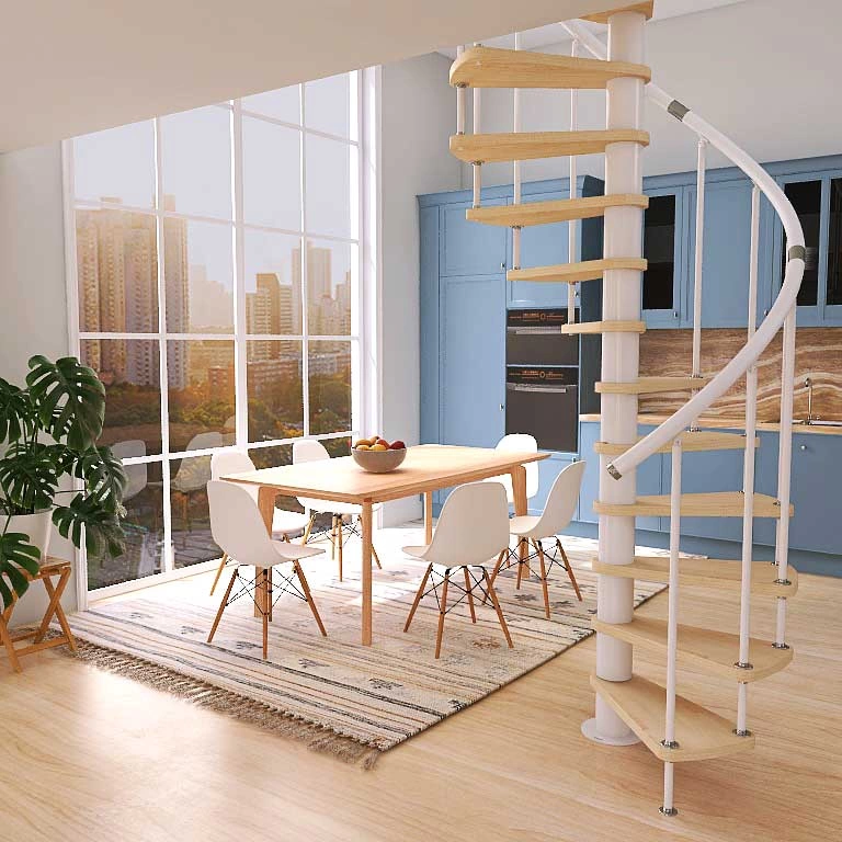 Винтовая лестница Prosto Spiral White D120см, h325.7-369.8 см, бук