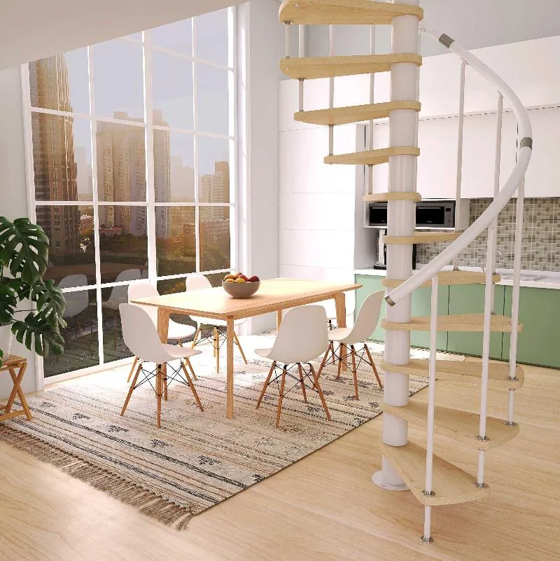 Винтовая лестница Prosto Spiral White D140см, h303.9-348,1 см, бук