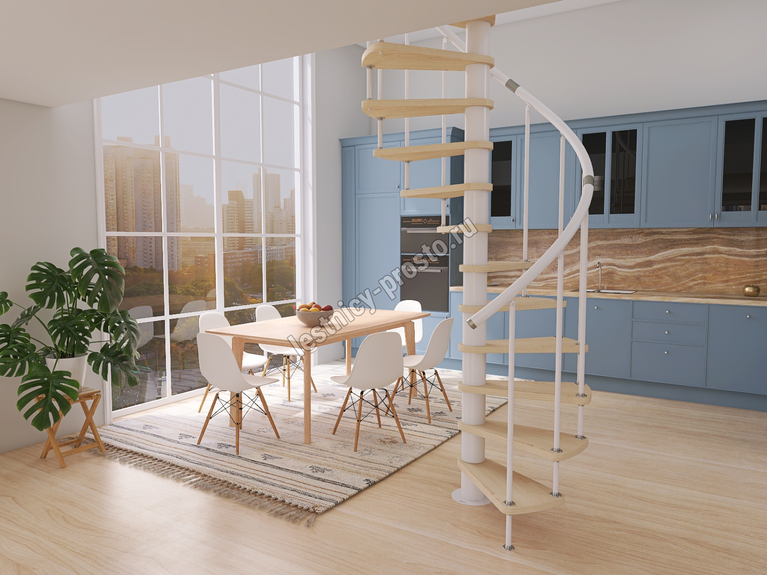 Винтовая лестница Prosto Spiral White D140см, h296.9-338.1 см