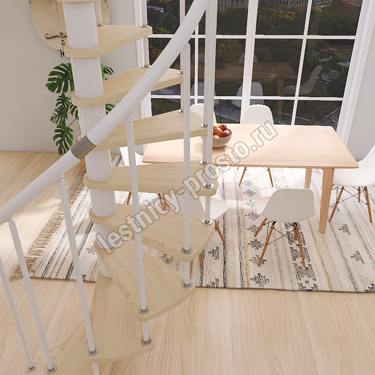 Винтовая лестница Prosto Spiral White D160см, h303.9-348,1 см, бук