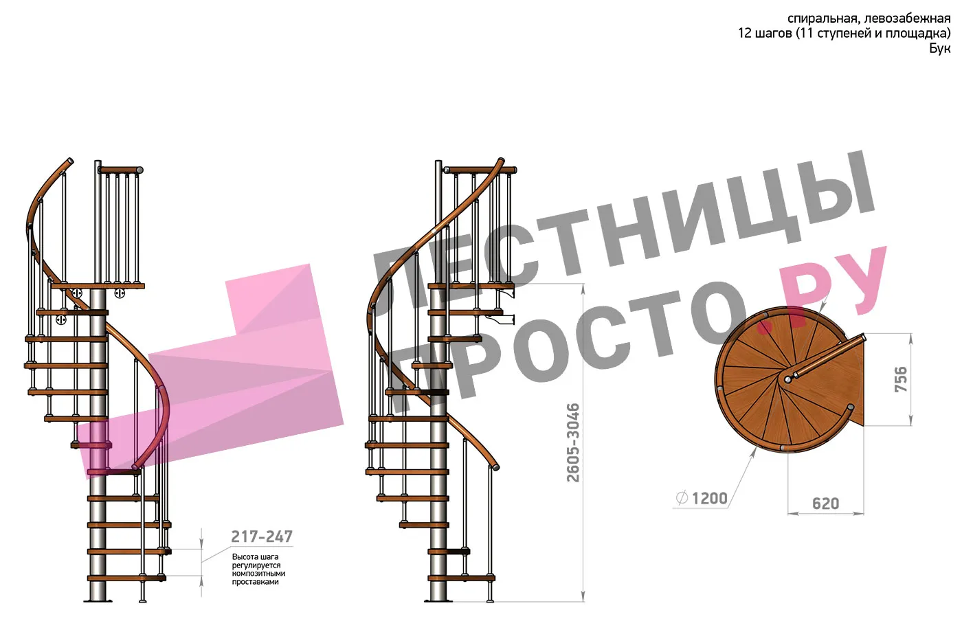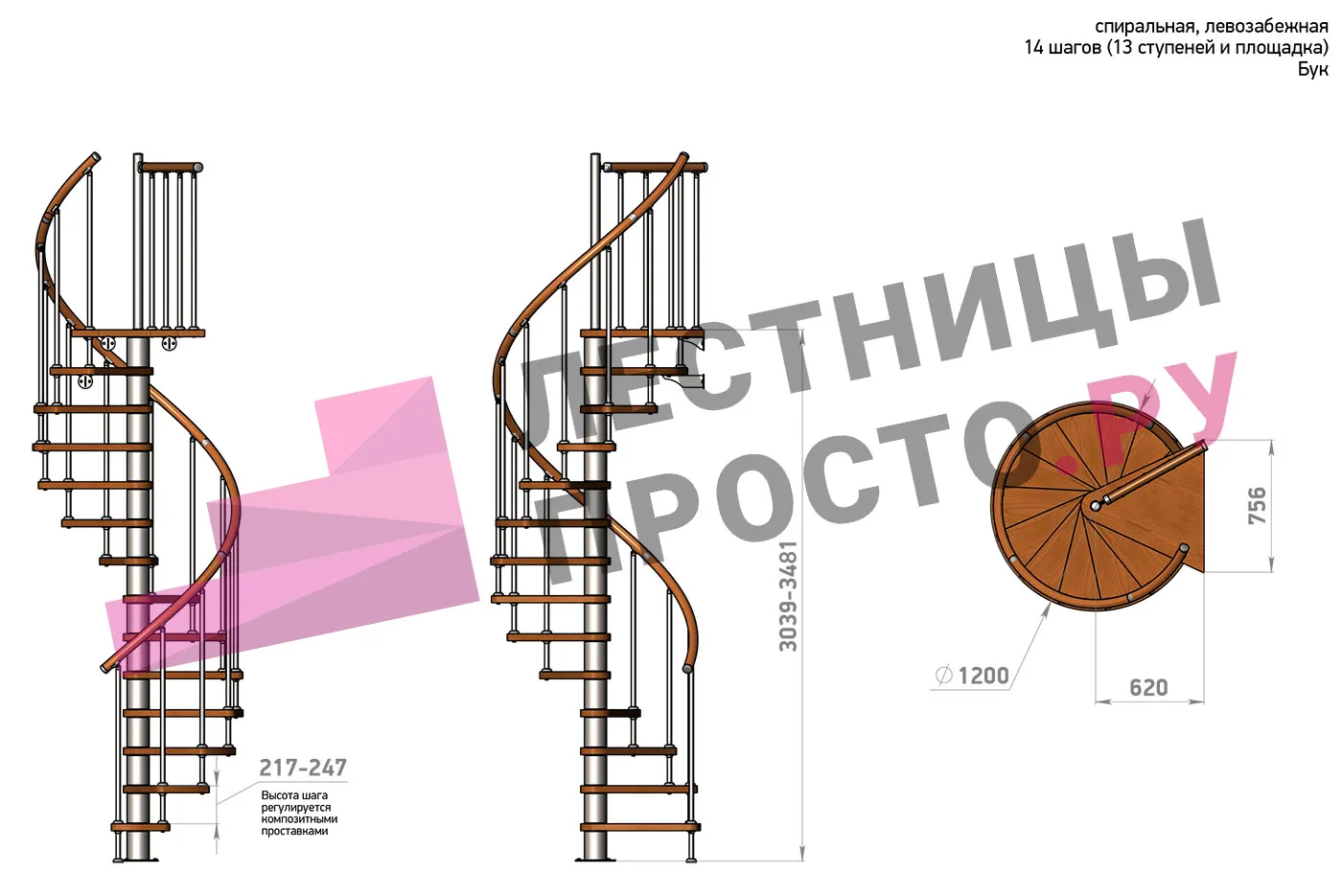 | Винтовая лестница Prosto Spiral White D120см, h325.7-369.8 см, бук |