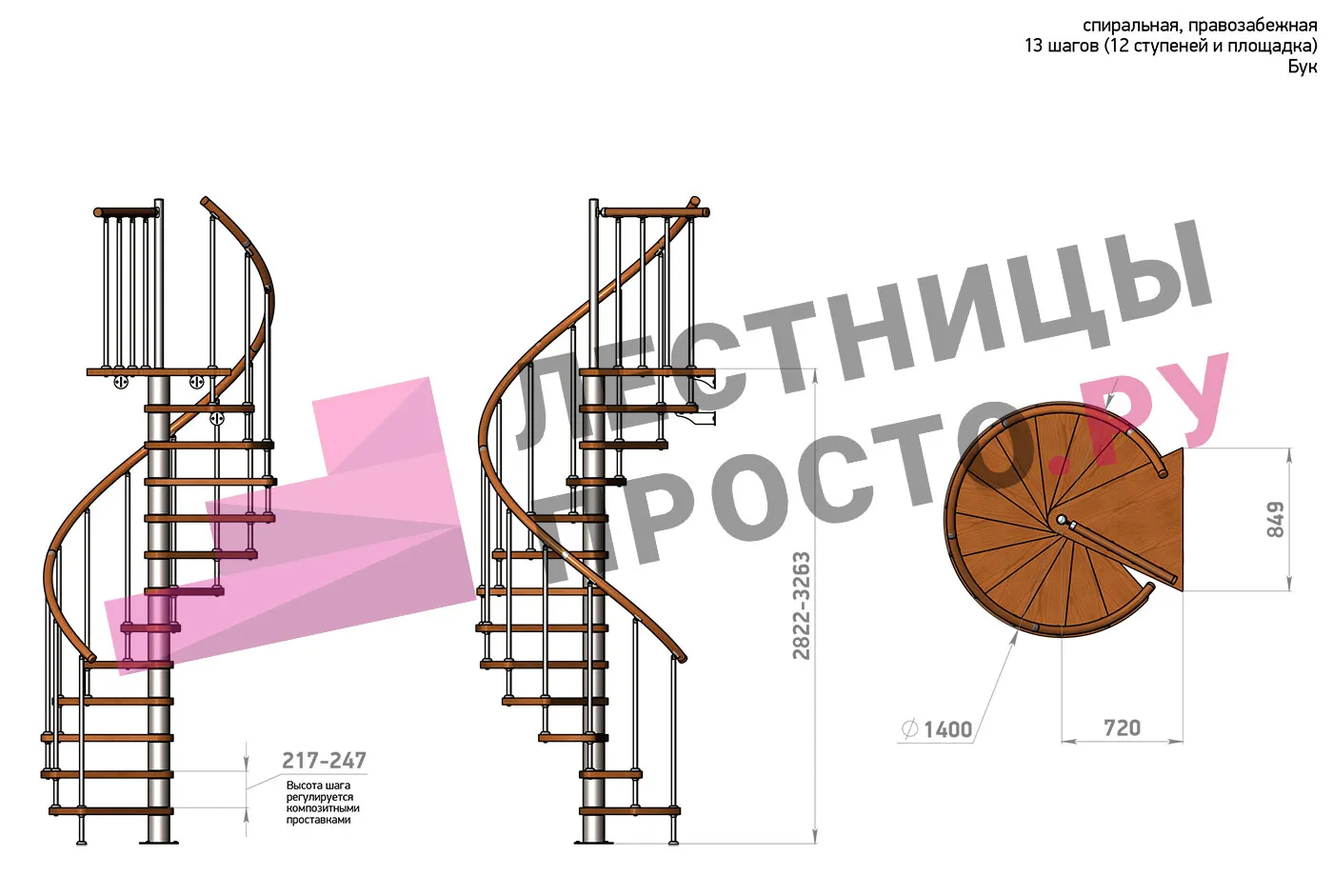 | Винтовая лестница Prosto Spiral White D140см, h282.2-326,3 см, бук |