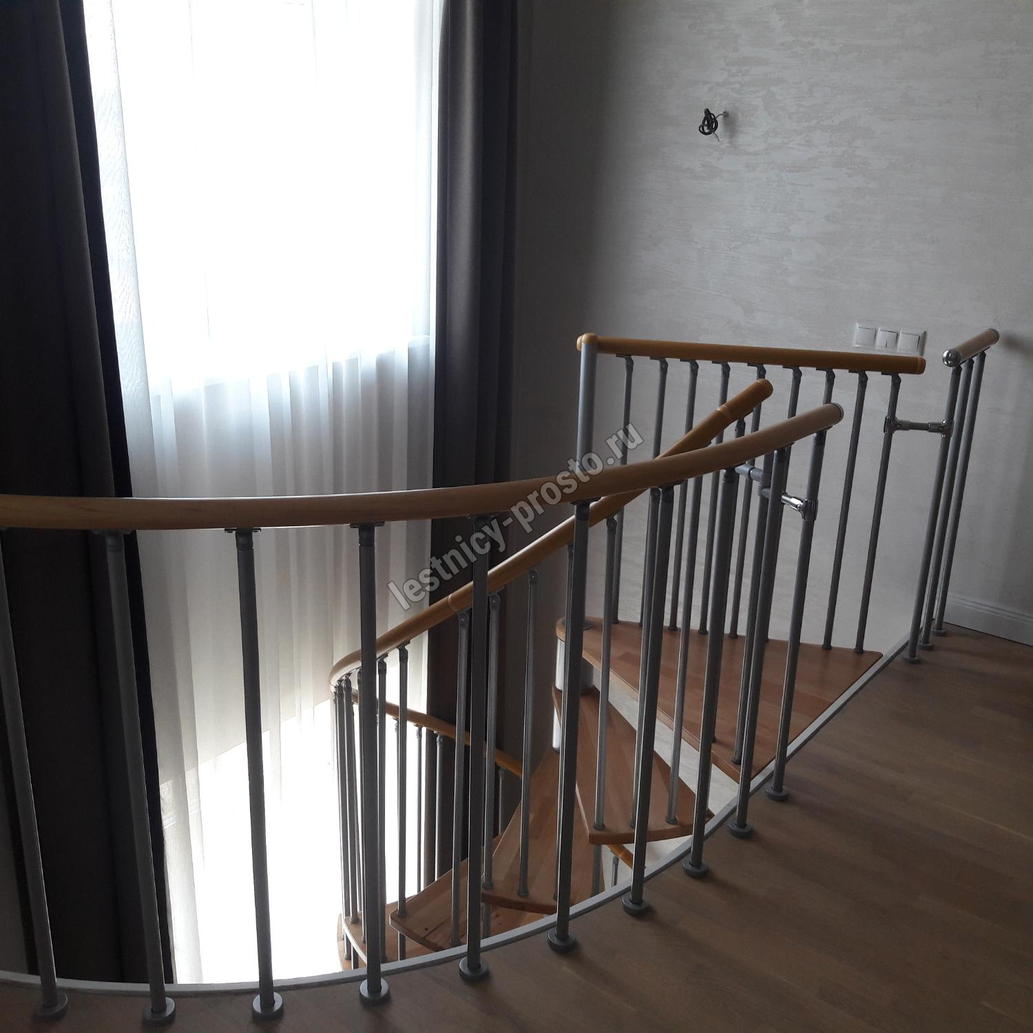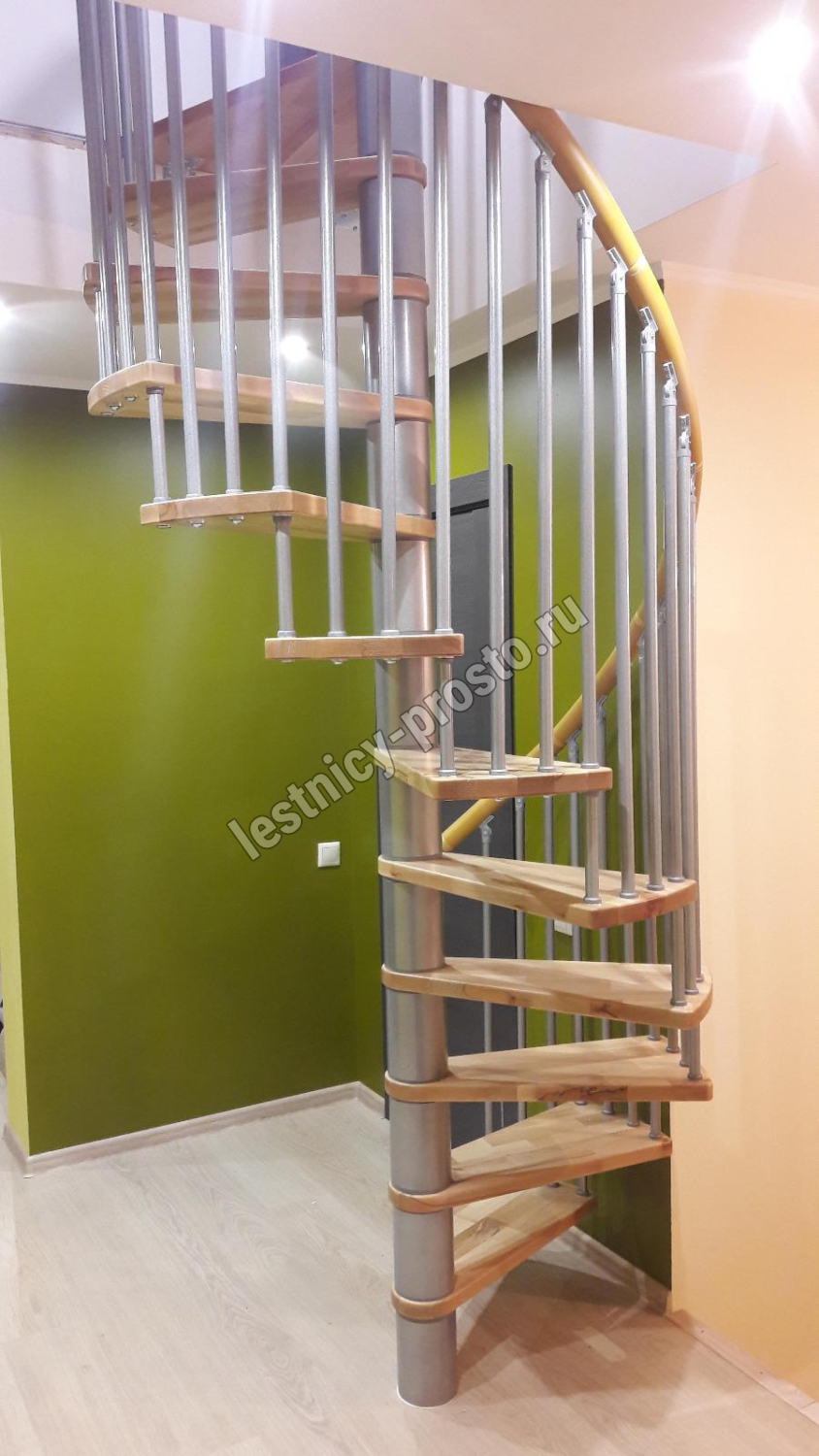 Винтовая лестница SPIRAL WOOD d140 см, серебро, лакированный дуб
