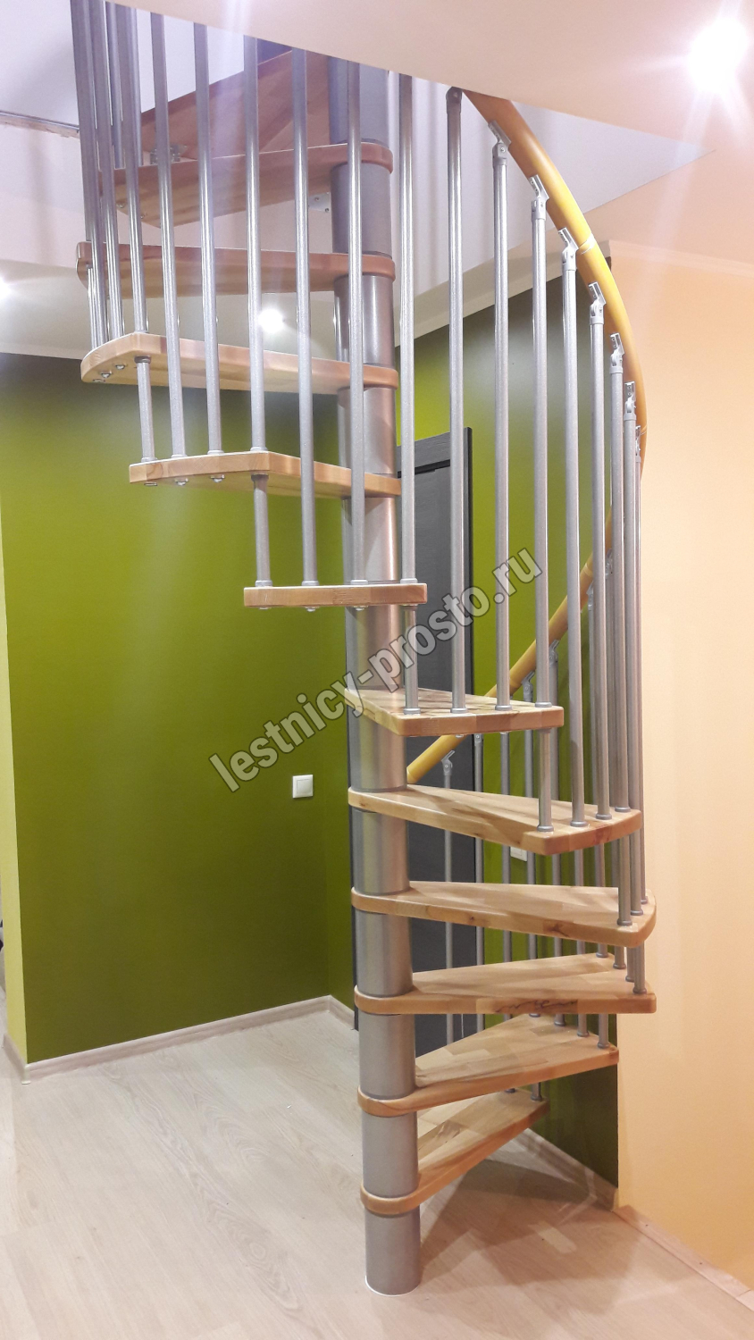 Поручень изготовлен из массива дуба в тон ступеням. Поручень и ступени лестницы покрыты износостойким защитным лаком.