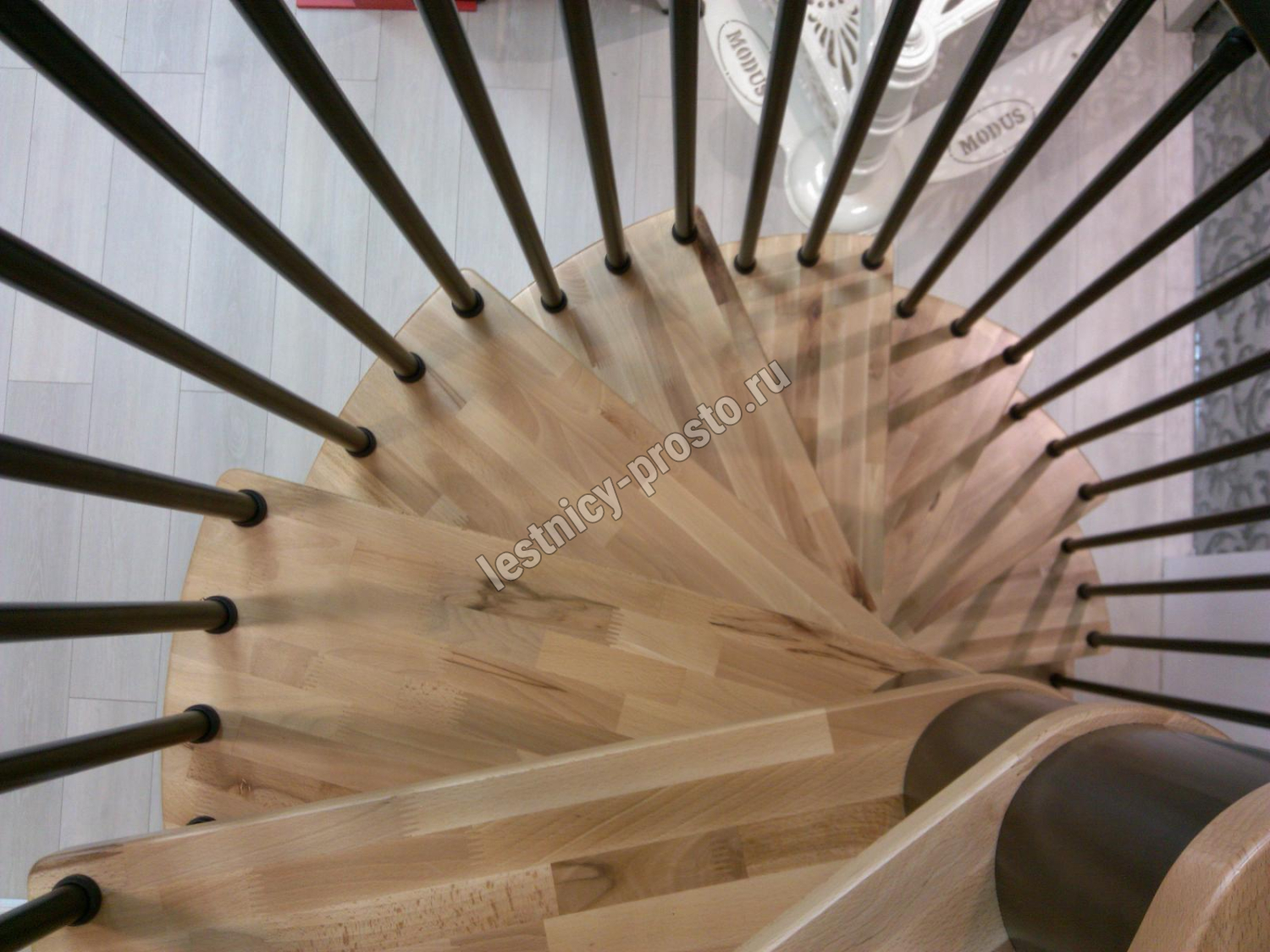 Ступени выполнены из сращенного бука, покрыты бесцветным лаком.