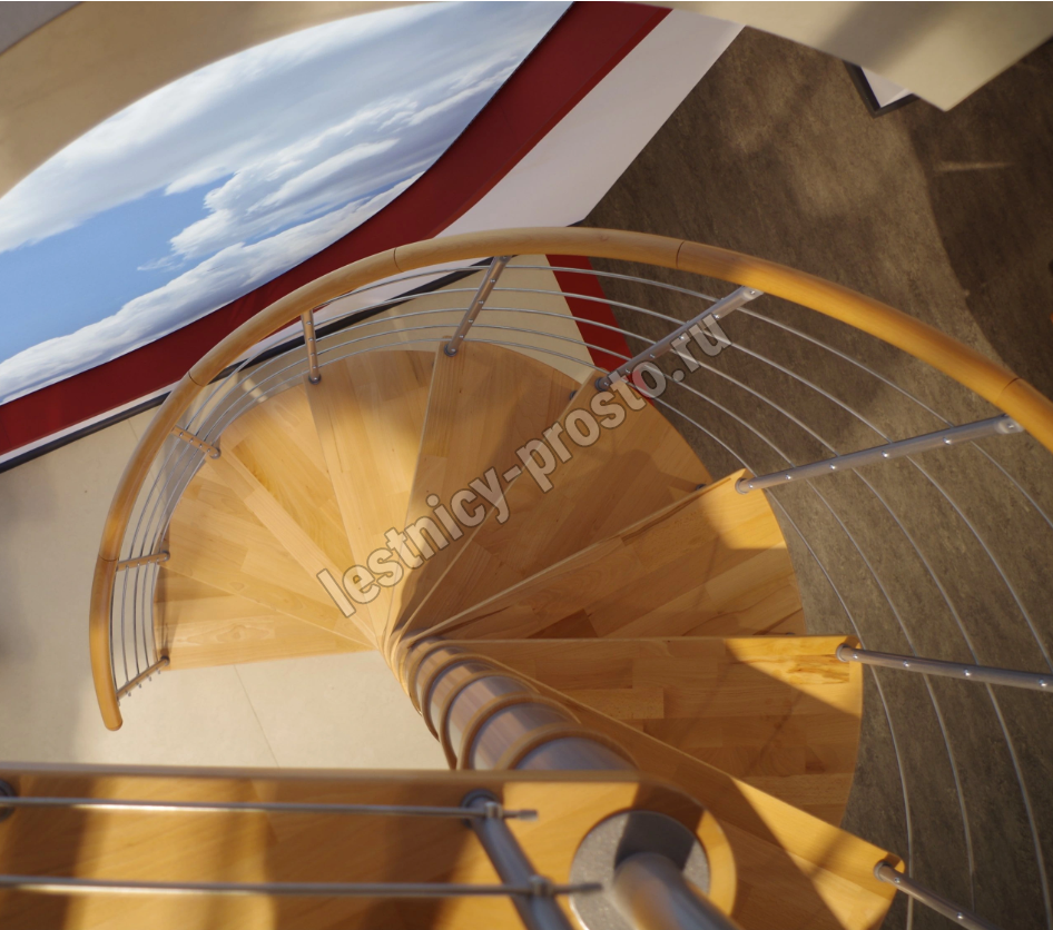 Винтовая лестница Venezia d120 см, серебро, бук лакированный