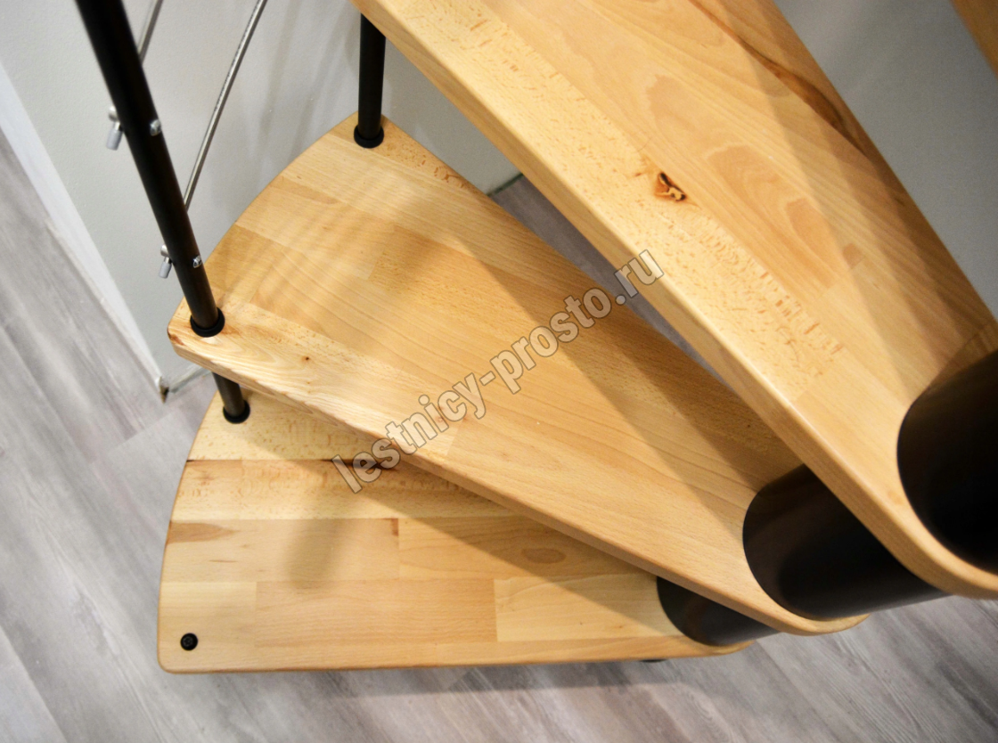 Ступени и поручень выполнены из сращенного бука и покрыты износостойким бесцветным защитным лаком. Все металлические детали с высококачественным порошковым покрытием. Каркас и металлические стойки серебристого цвета. Под заказ возможно изготовление лестницы другой расцветки.