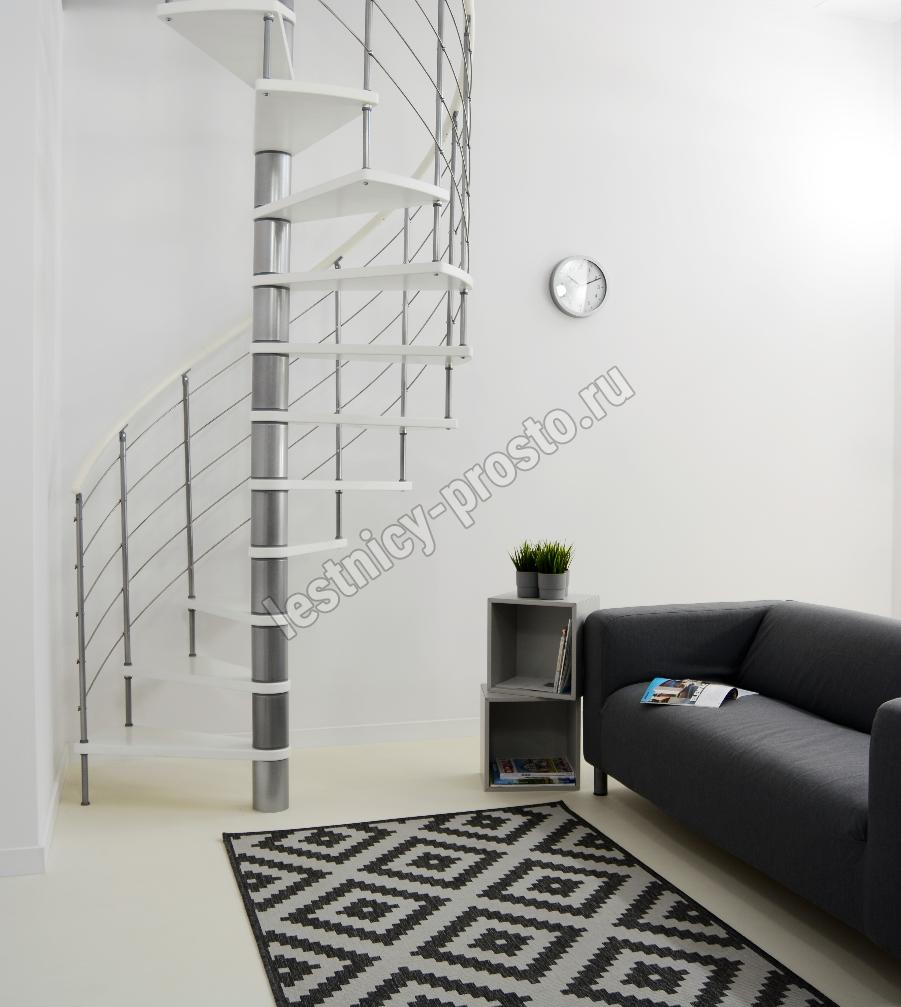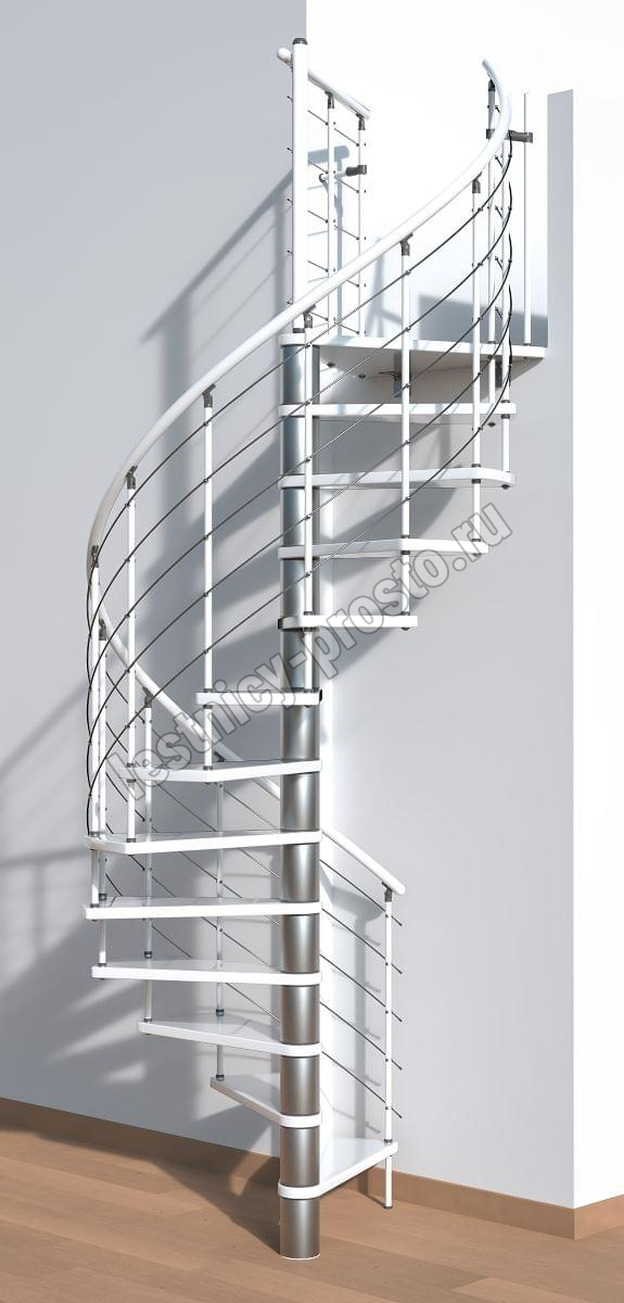 Винтовая лестница Venezia d140 см, серебро, дуб лакированный