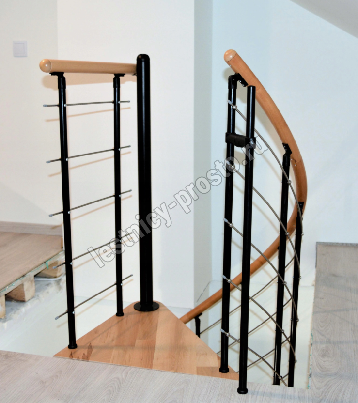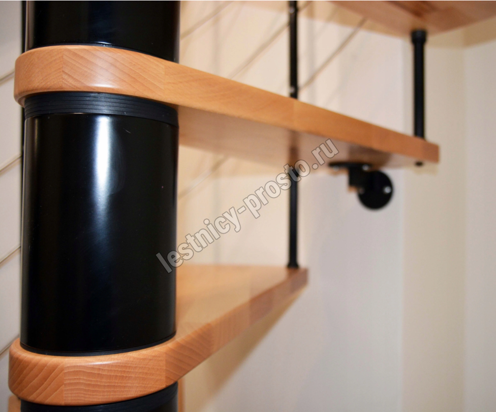 Cтупени и поручень изготовлены из массива дуба и покрыты специальным лаком от компании Минка, который предотвращает царапины, сколы или стирание поверхности при интенсивном использовании лестницы. Благодаря возможности регулировать высоту шага с помощью пластиковых вставок (входят в базовый комплект), высоту лестницы можно варьировать в пределах от 2860 до 3090 мм. Кроме того, купив дополнительную секцию для этой лестницы, можно поднять высоту до 3320 мм.