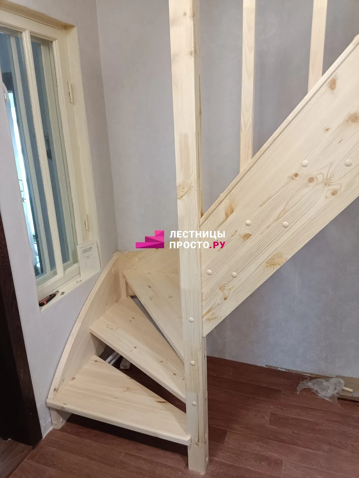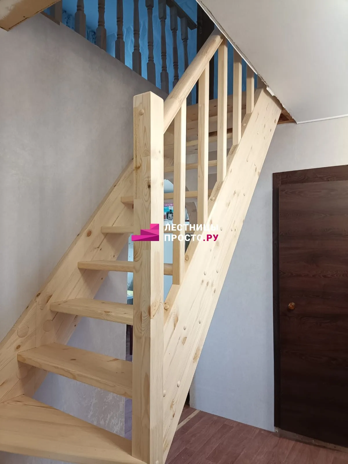 Лестница из сосны с поворотом и подступёнками для частного дома