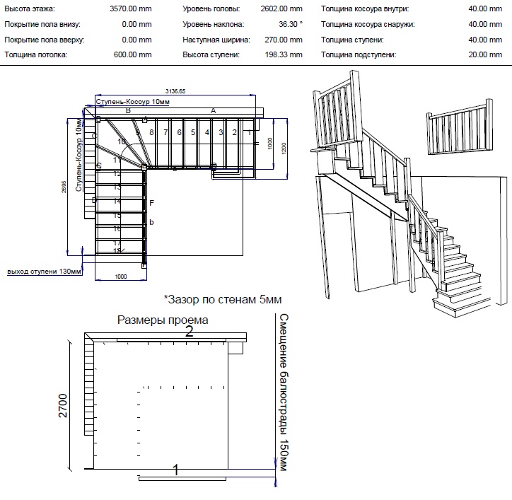 Форма лестницы Г-образная