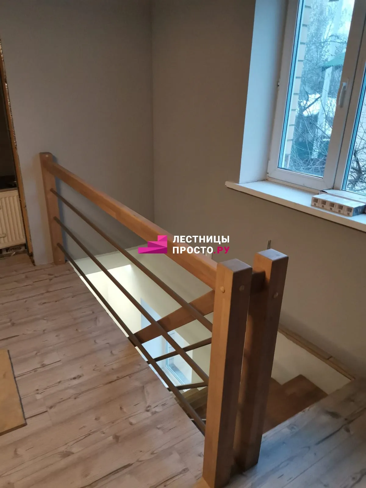Металлическая лестница с дубовыми ступенями и ограждением LP-1-20